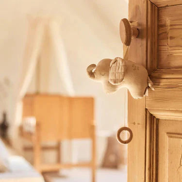 This adorable musical pendant from the Elephant Tales collection plays a soothing song and helps your little one drift off to sleep. The soft materials and sweet details make it a charming accessory for the nursery.