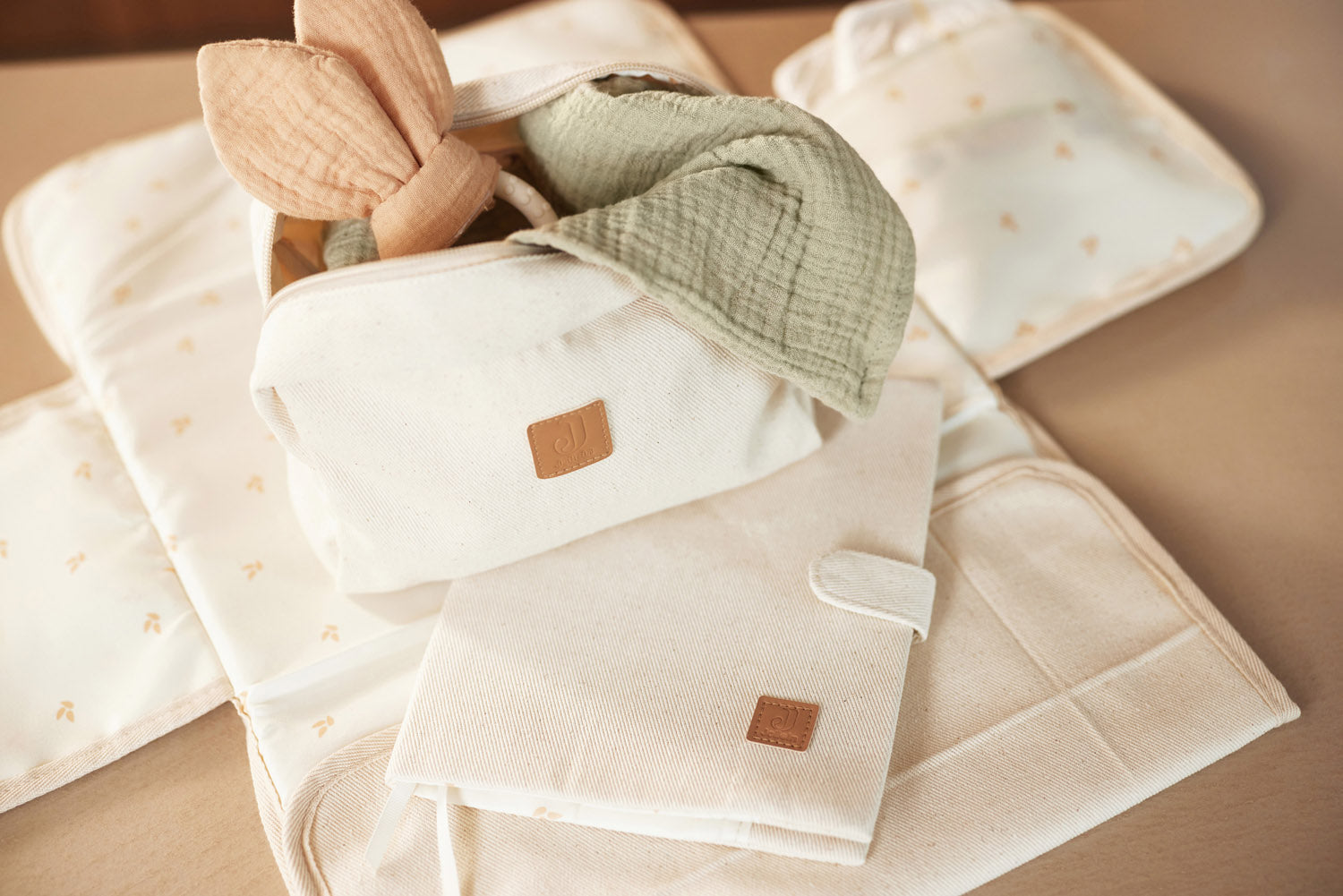This stylish changing mat in linen-look twill is ideal for parents who want quick and convenient diaper changes on the go. Thanks to the practical storage compartments, you'll always have diapers and wipes within easy reach. The drawstring closure makes it easy to fold and fit neatly into your diaper bag.