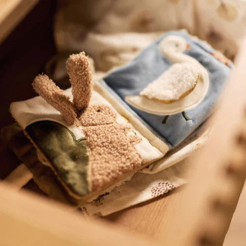 Deze vrolijke activiteitenkubus in het Lovely Birds-thema zit vol kleurrijke printjes, zachte stofjes, leuke tags en geborduurde details. Ontdek schattige vogeltjes, fluffy wolkjes, bloemen, een ster én fairy Amy! De kubus prikkelt de zintuigen van je kleintje en is perfect om eindeloos mee te spelen en ontdekken.