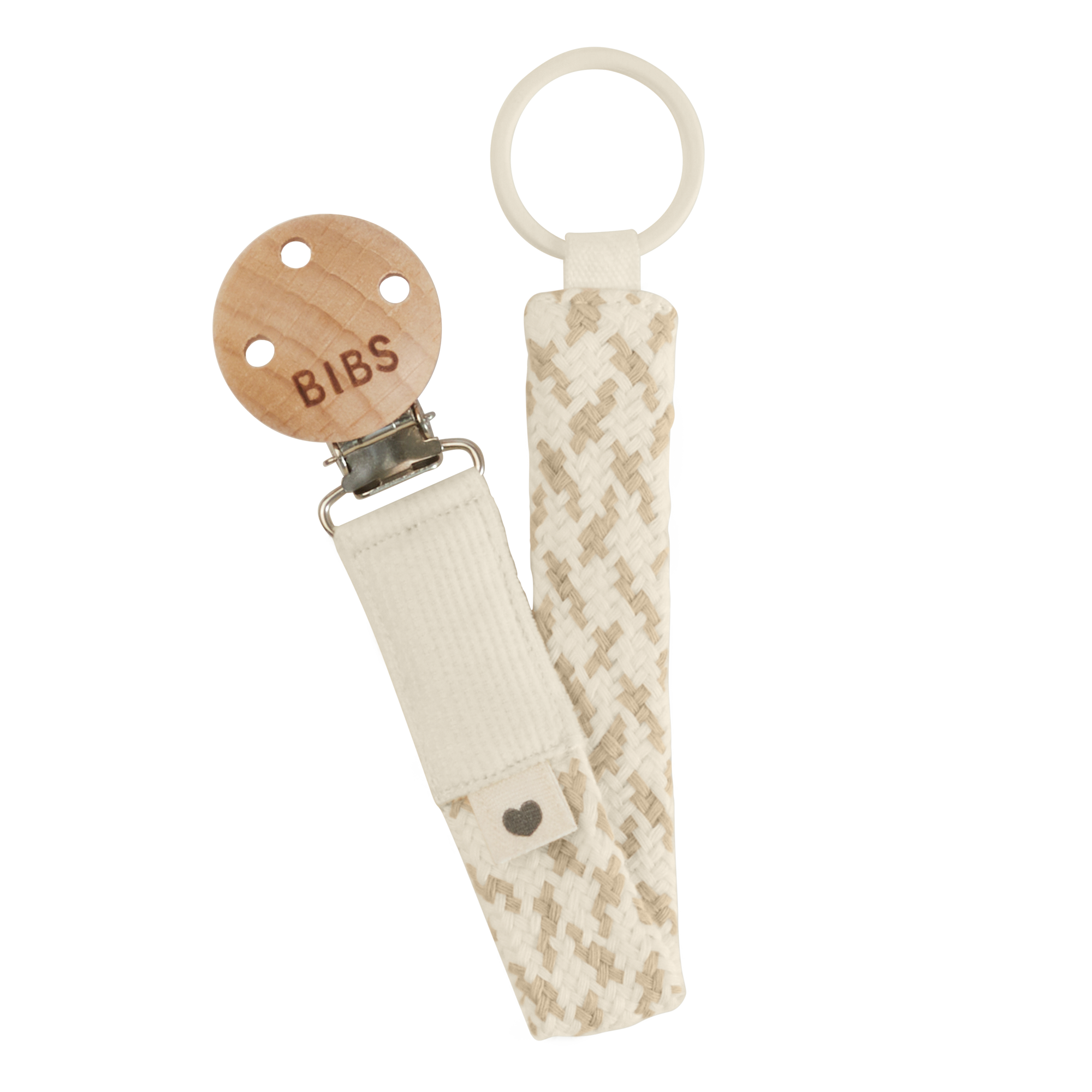 De BIBS pacifier braid in ivory vanilla is een stijlvolle en veilige manier om de fopspeen van je baby altijd binnen handbereik te houden. Gemaakt van zachte gerecyclede materialen en voorzien van een stevige metalen clip, die eenvoudig aan kleding of een doekje te bevestigen is. Een musthave voor onderweg én thuis.