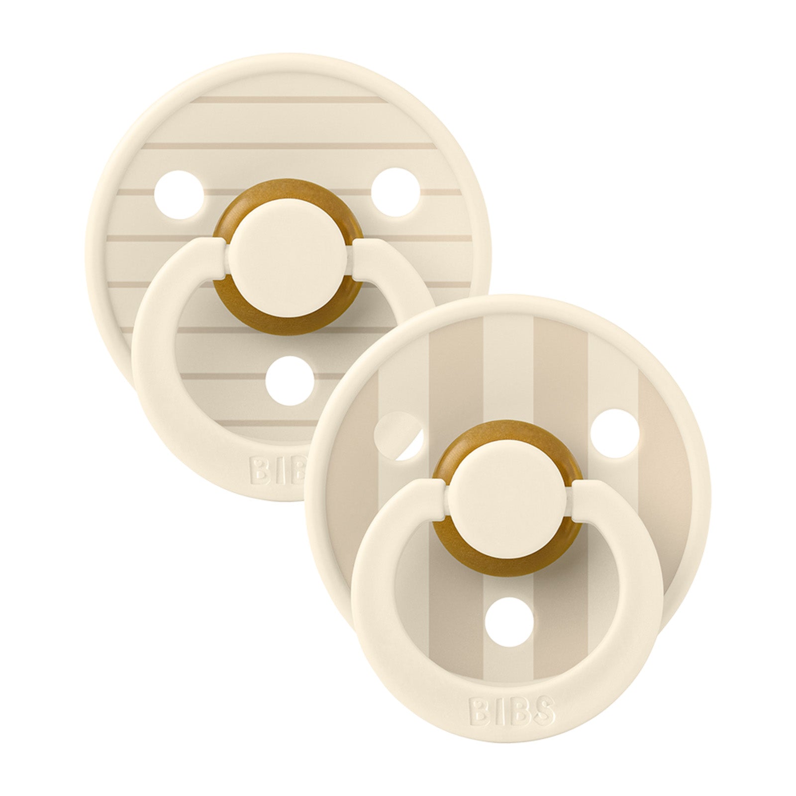 Deze BIBS Studio Colour fopspenen in de kleuren Pin Ivory en Vanilla combineren comfort met een tijdloos Scandinavisch ontwerp. De ronde speen van natuurlijk rubberlatex bootst de vorm van een borst na en ondersteunt een natuurlijke zuigreflex. Geschikt voor pasgeboren baby's vanaf 0 maanden.
