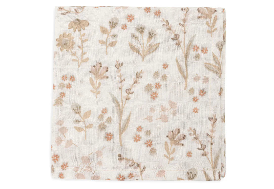 Hydrofiele monddoekjes zijn onmisbaar voor jonge ouders. Deze set van drie met het lieve Bloomy printje is ideaal voor het poetsen van mondjes, knoeien en onderweg. Gemaakt van zacht hydrofiel katoen, dus vriendelijk voor het babyhuidje én makkelijk wasbaar.
