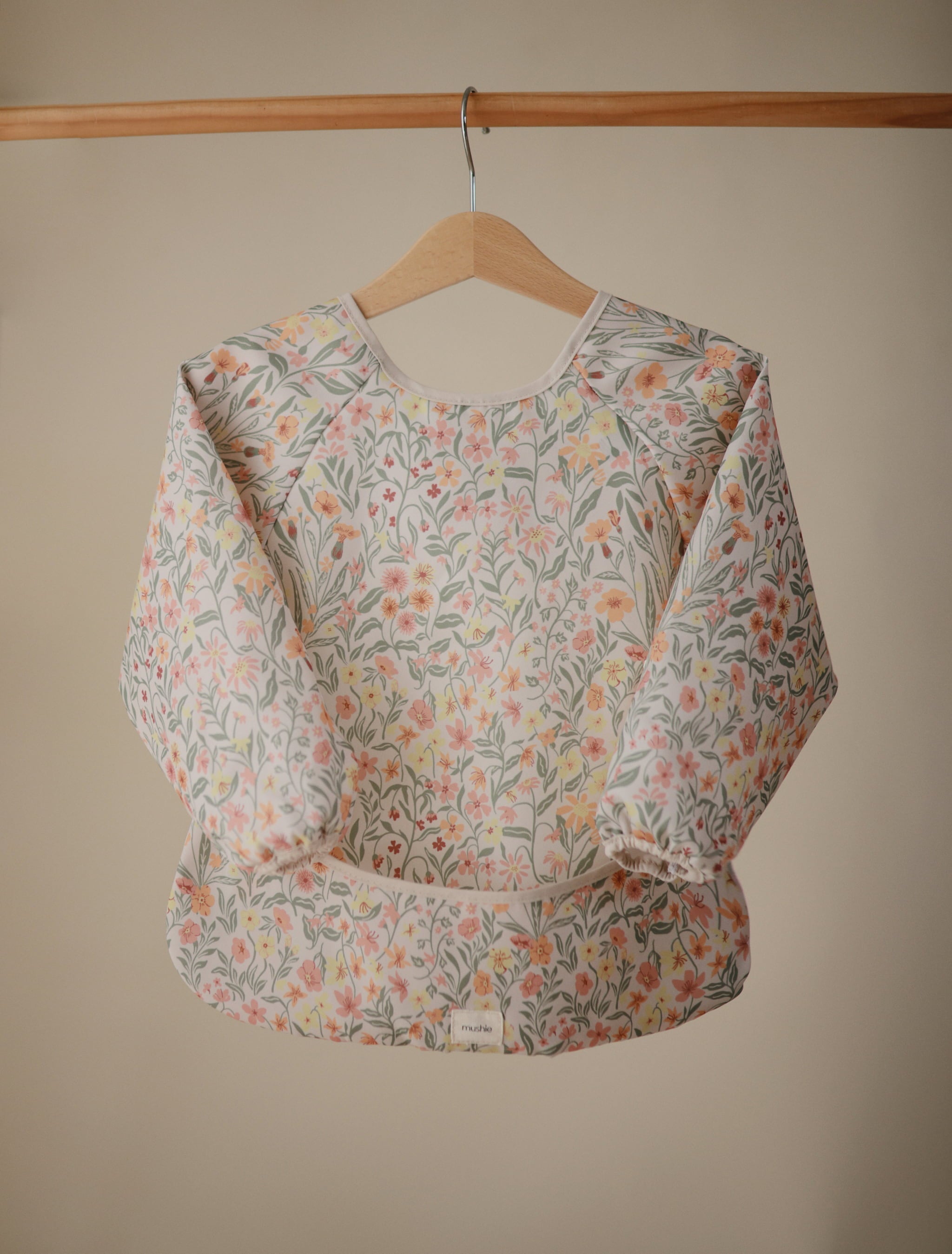 Eten, knutselen of knoeien? Geen probleem met deze lange mouwen slab van Mushie in pastel blooms print. Dankzij de lange mouwen en het slimme opvangvakje blijft kleding schoon en droog. De slab is licht, waterafstotend en snel schoon te maken met een doekje. Met klittenbandsluiting aan de achterkant voor eenvoudig aan- en uittrekken.